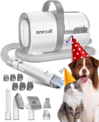 oneisall Dog Hair Vacuum & Dog Grooming Kit, Pet Grooming Vacuum with Pet Clipper Nail Grinder, 1.5L Dust Cup Dog Brush Vacuum