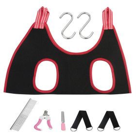 Dog Grooming Hammock Harness for Dogs & Cats with Pet Nail Clipper Trimmer (Color: black red, Size: S)